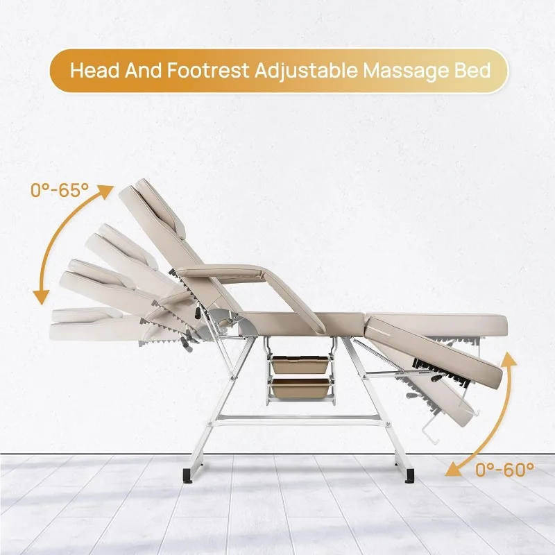 - Foldable Facial Bed: Both the backrest and leg supports of the 3 Duanshi Facial Bed can be easily adjusted to the desired angle, the maximum adjustable angle of the backrest is 65°, and the footrest can be tilted to 60°. Bottom spring design, it can be converted into a tattoo chair when lifted, guaranteeing its versatility and optimal convenience for beauticians.