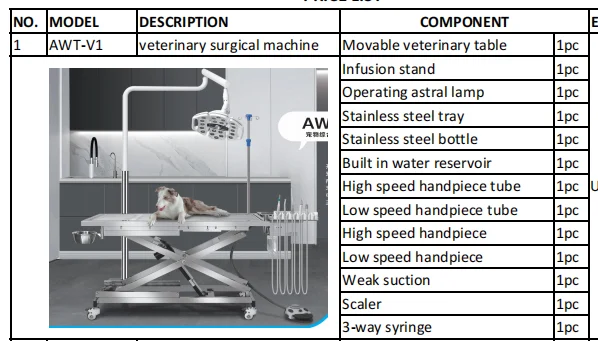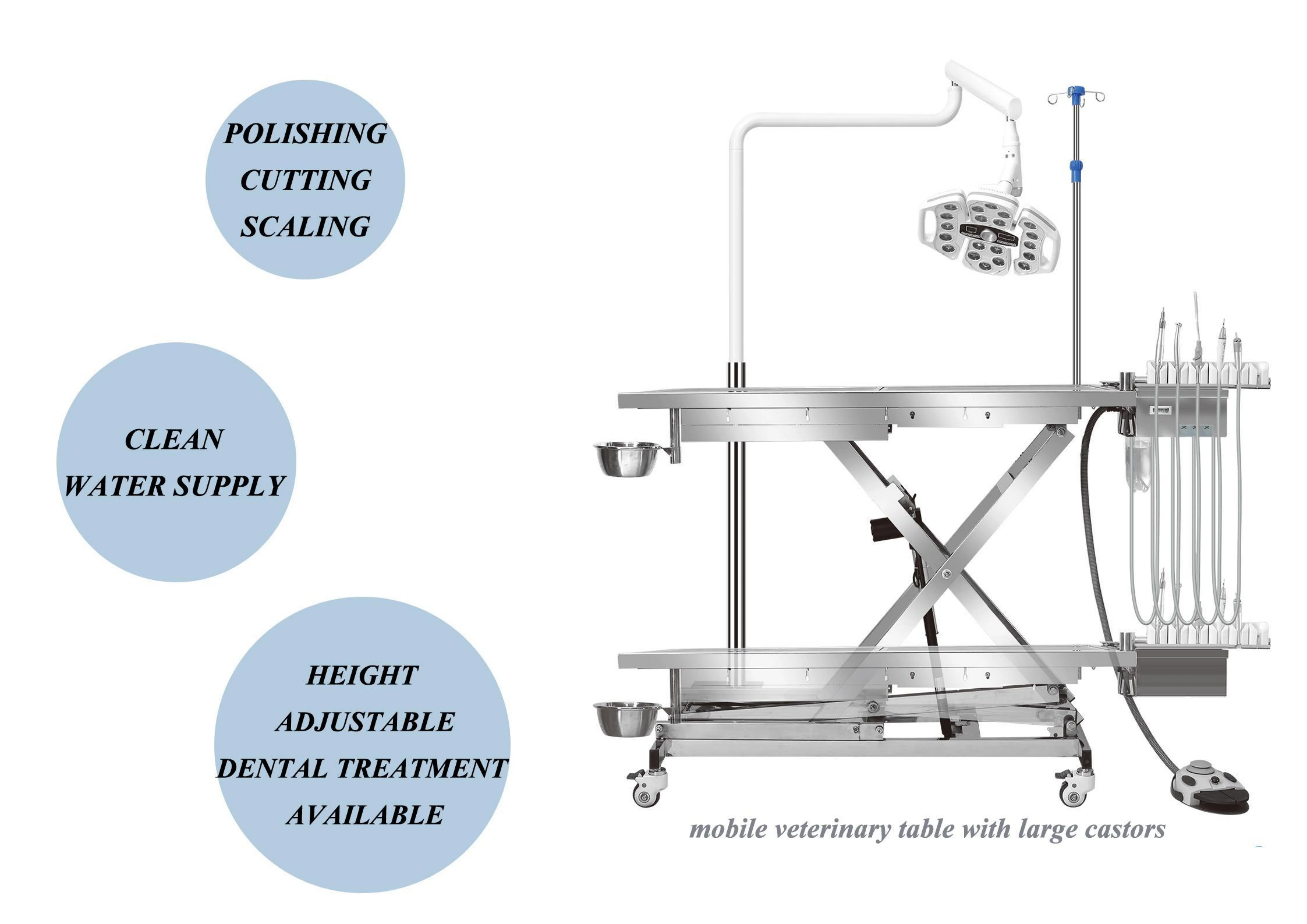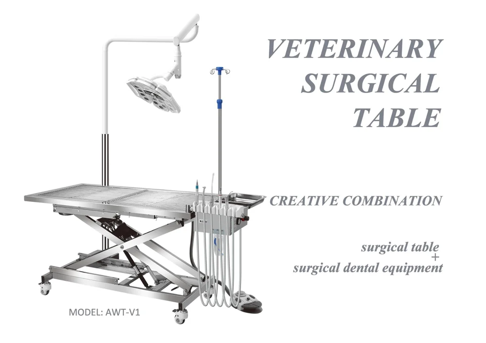 Multifunctional Mobile Veterinary Surgical Table with Dental Equipment and Large Castors